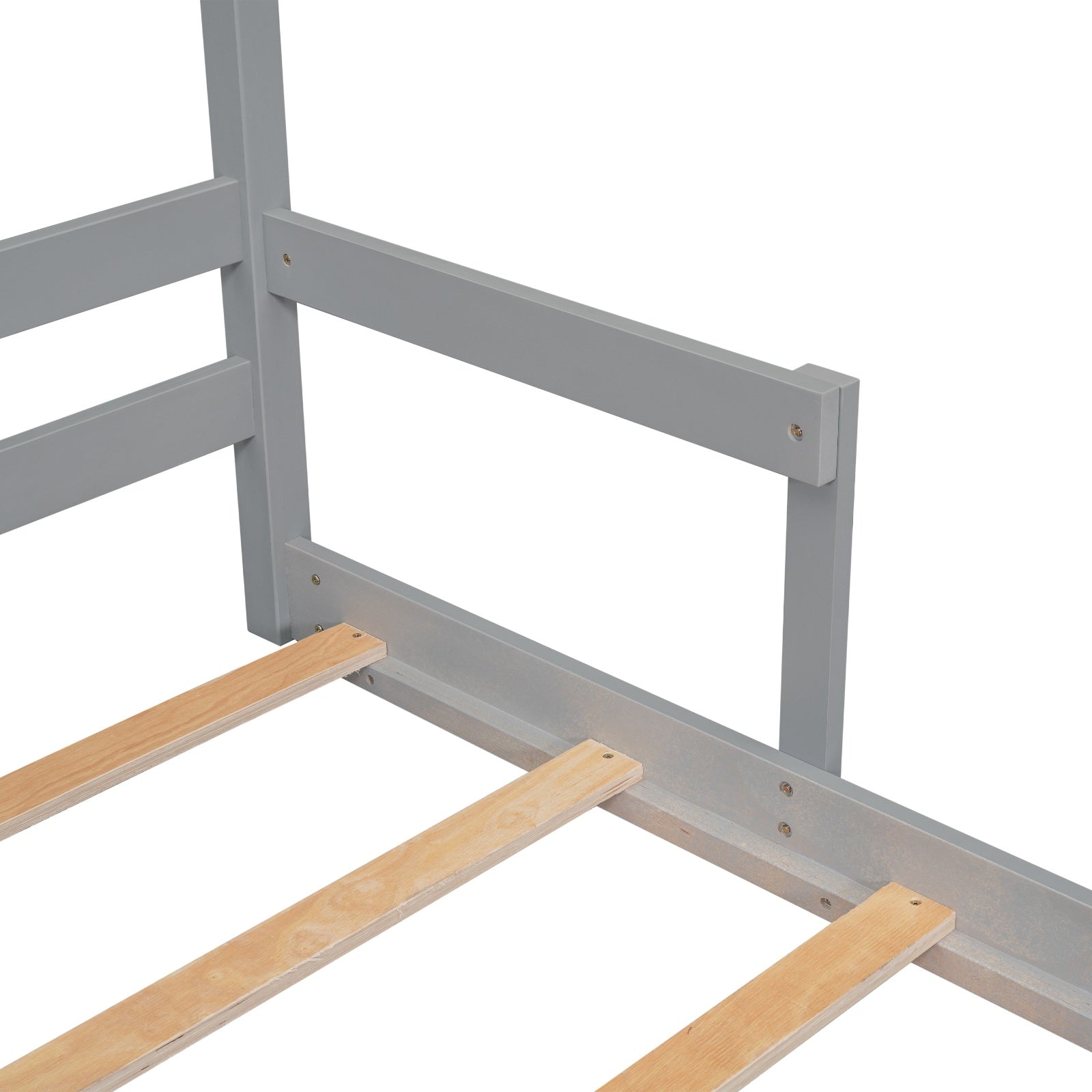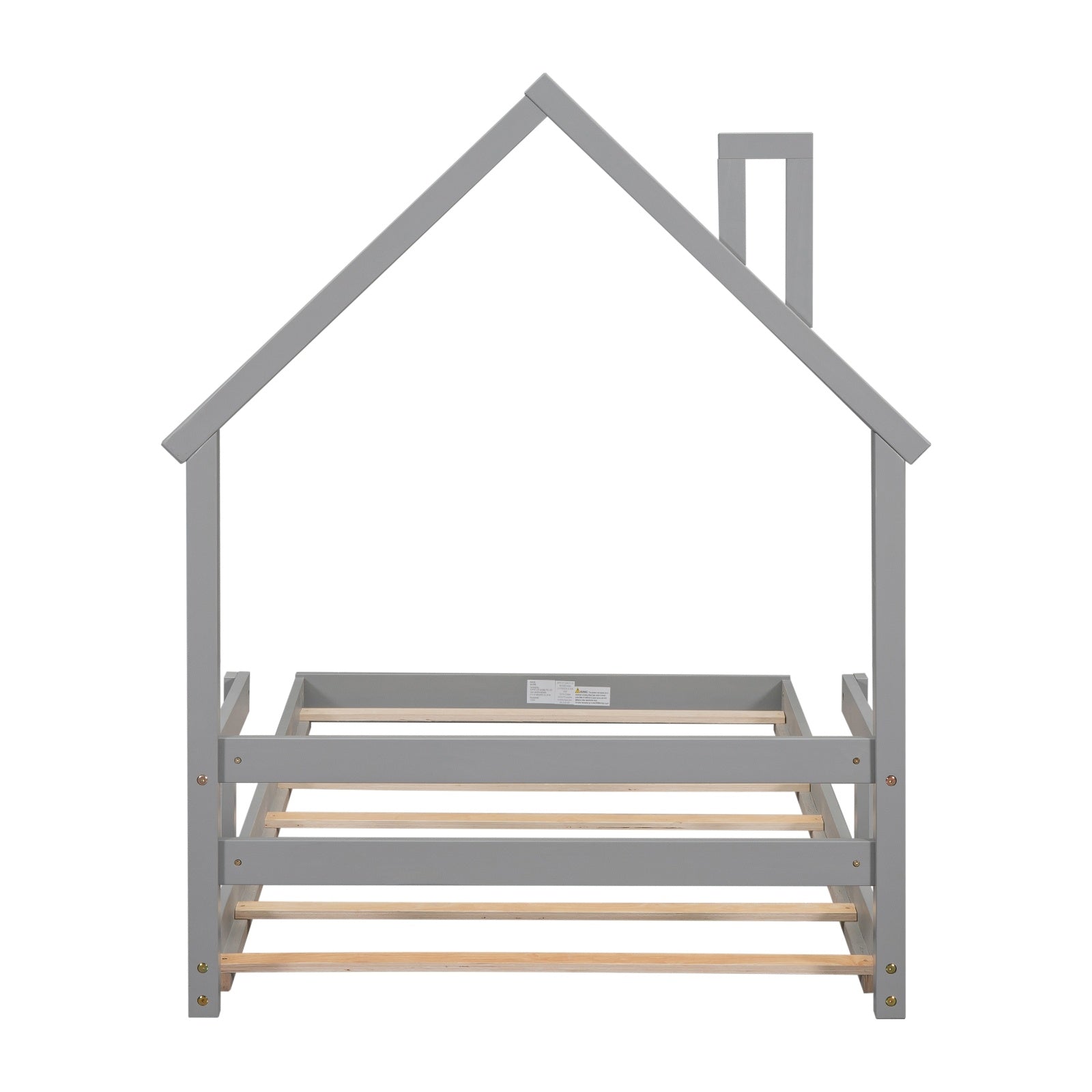 Twin House-Shaped Headboard Floor Bed with Handrails ,slats,Grey